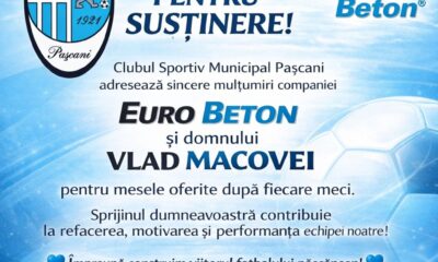 MULȚUMIM PENTRU SUSȚINERE! Clubul Sportiv Municipal Pașcani adresează sincere mulțumiri companiei Euro Beton și domnului Vlad Macovei pentru generozitatea și implicarea...