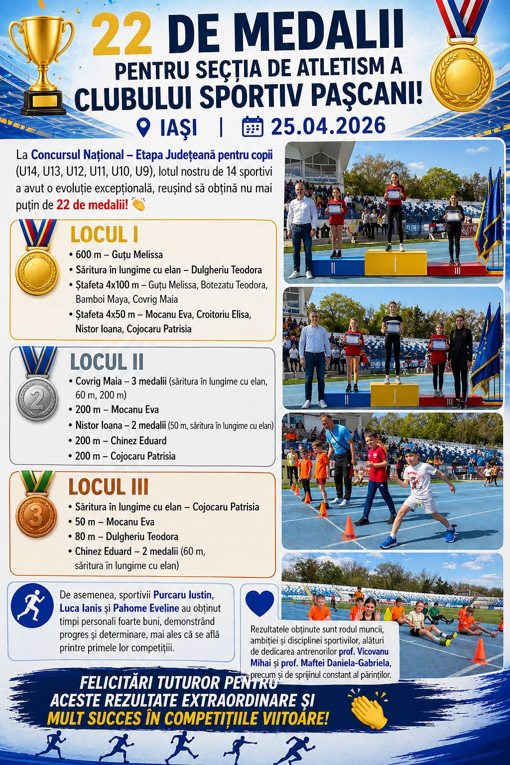 🏆 22 DE MEDALII pentru secția de atletism a Clubului Sportiv Pașcani! 🏅